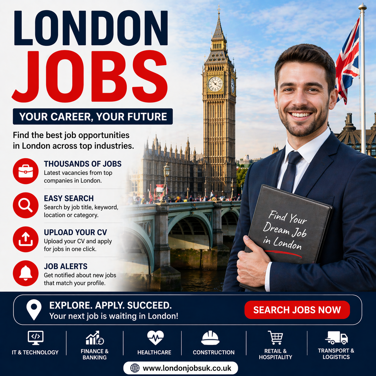 London Jobs portal furnishes all the jobs across different sectors, and the job site covers all the locations in the UK. It can be the right place to find different opportunities including IT, Construction, Accounting/Finance, Healthcare, Transportation, BPO, and many more. If you are in search of Jobs in London, our website can be a perfect search engine.